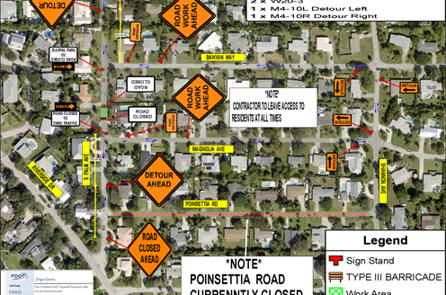 NOTICE: a portion of S. Palm Ave. will be closed from Wednesday - Friday this week (4/15 - 4/17) as part of the Basin 1 project. The road will be closed to thru traffic with posted detours. Access will remain for residents of the area.